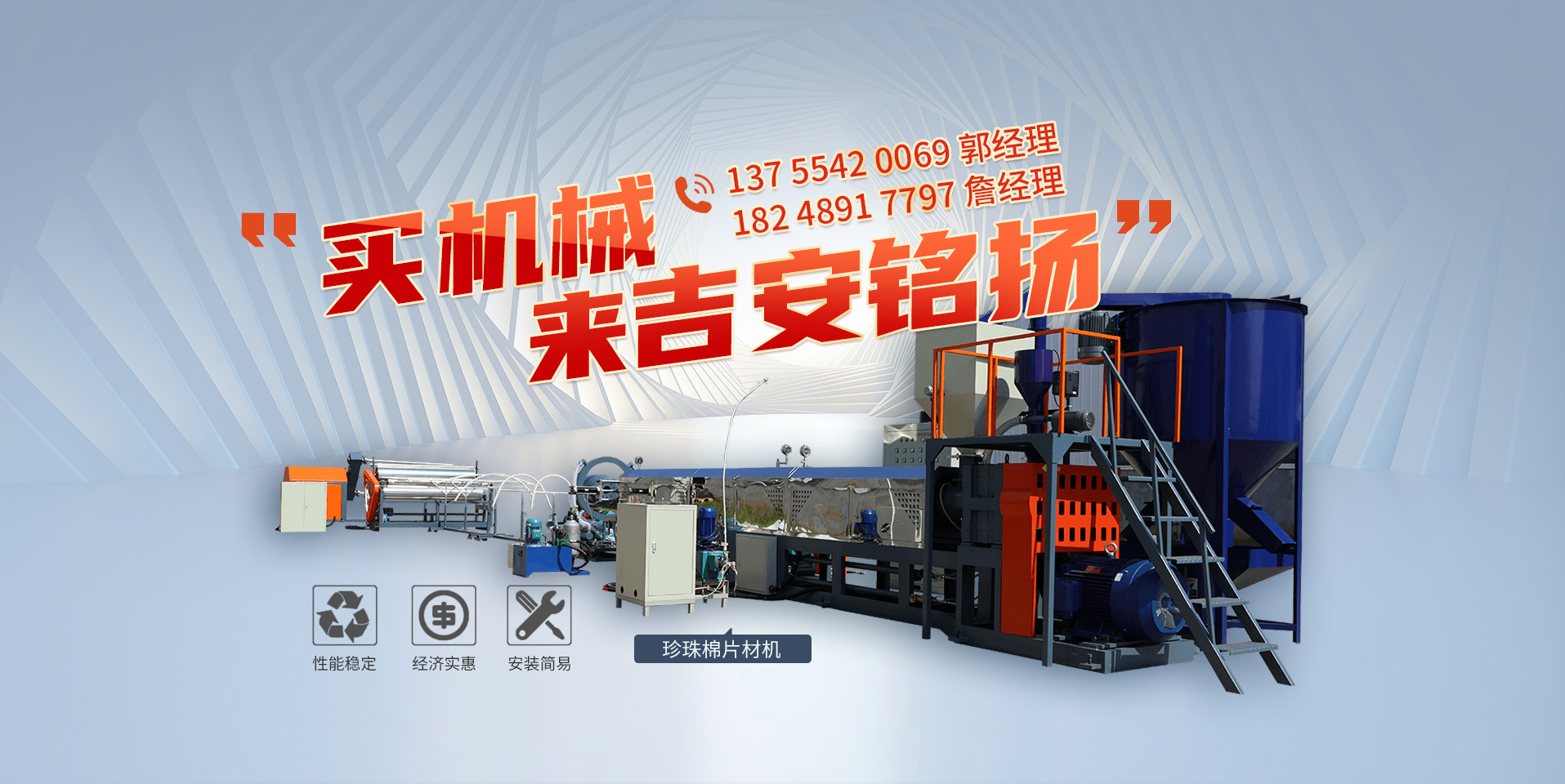 吉安銘揚機械有限公司成立于2019年,總經(jīng)理有著二十多年從業(yè)經(jīng)驗,是一家專注于珍珠棉機械設(shè)備研發(fā)、開發(fā)、生產(chǎn)及銷售的現(xiàn)代高科技企業(yè),主要產(chǎn)品有:珍珠棉發(fā)泡機、覆膜機、珍珠棉電復(fù)合機、珍珠棉造粒機等數(shù)十種產(chǎn)品,應(yīng)用于包裝、建筑、材料等行業(yè)。總部及研發(fā)基地設(shè)立于風(fēng)景秀麗的紅色革命根據(jù)地吉安。